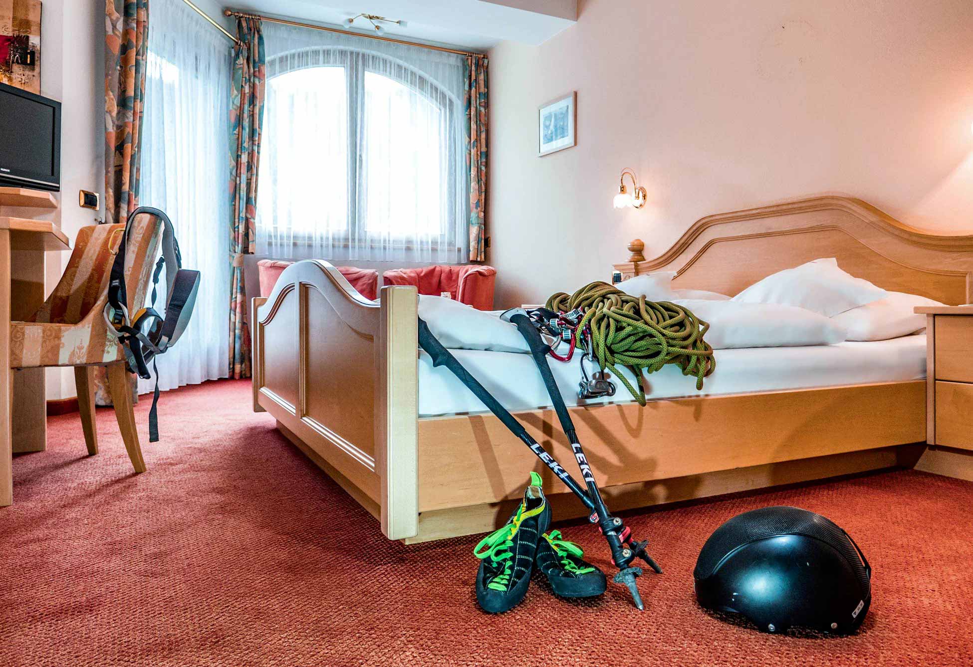 Our cosy full-furnished bedrooms are perfect for spending pleasant vacations and have everything that a demanding guest may need. From the balconies you may enjoy the panoramic view to the Sassolungo.
